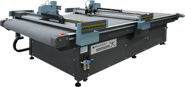 在瑞洲科技的展位現(xiàn)場,RZCRT5-1813智能數(shù)控切割機,其自首發(fā)之日起,全球總銷量已達數(shù)千臺,經(jīng)市場多年驗證,性能穩(wěn)定、表現(xiàn)卓越,深受國內(nèi)外用戶青睞; 集智能、高效于一體的智能數(shù)控切割機的,可實現(xiàn)畫線、繪圖文字標注、壓痕、半刀切割、全刀切割一次性完成,切割速度高達1500m/s,振動刀轉(zhuǎn)速高達18000轉(zhuǎn)。同時標配進口直線導軌,傳動系統(tǒng)采用進口直線導軌、齒條、同步帶,切割精度完全達到往返原點零誤差。